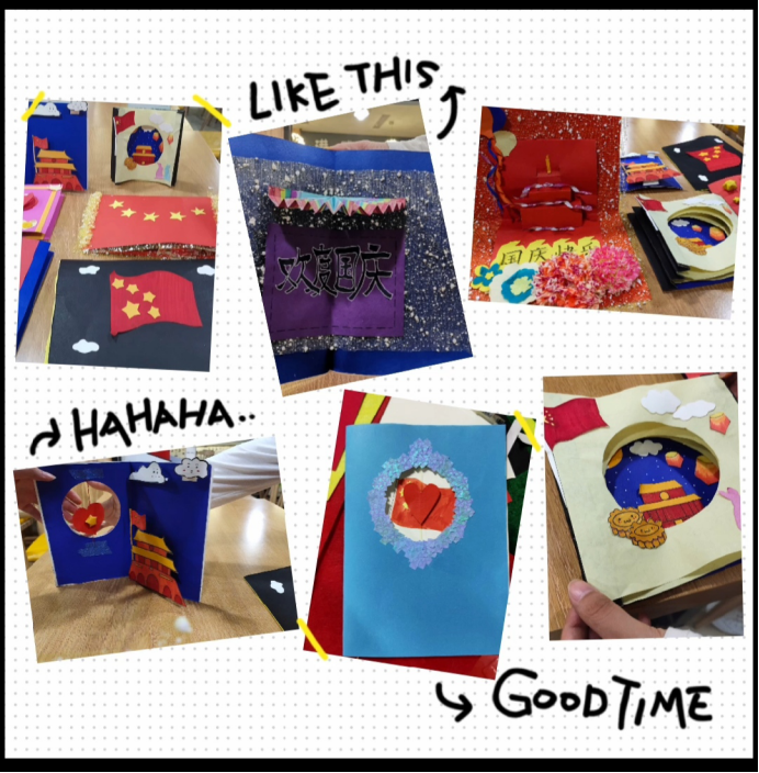 一把把剪刀游走于纸间,一双双巧手做出一片片心意,一幅幅饱含美好寓意的作品跃然纸上。“为中国送上一张生日贺卡”——不仅仅只是一张贺卡,同时也是一种图形创意设计,是把我们在课堂上所学到的技法应用到卡片图案设计当中,即学即用,理论来联系实际,以此激发学生的学习兴趣。同学们都非常兴致勃勃地参与到此次活动当中,他们有的以班级为单位,也有的三两结伴,互相商量好时间和地点,并合理地利用好课余时间,以最快的速度和最高的标准,制作出许多对祖国母亲71周年华诞表示美好祝福的有趣图形设计。他们的作品,既表现了对祖国母亲71周年华诞的衷心祝福,又表达了青少年的心声,歌颂了祖国的发展,感受到了祖国强大给予的幸福生活,激发了青少年身为中国人的自豪感。