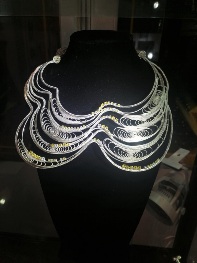 由自治区工业和信息化厅、自治区文化和旅游厅、自治区二轻联社联合主办,广西工艺美术协会协办的2020广西工艺美术作品旅游工艺品暨大师精品展览在南宁国际会展中心闭幕。梧州学院宝石与艺术设计学院教师陈丹枫、张颖和肖堯参加了本次展览,共选送4套件首饰作品参展。张颖老师的首饰作品《拾级而上·壮美梯田》喜获“八桂天工”银奖,并入选“决胜全面小康决战脱贫攻坚”2020广西艺术作品展。