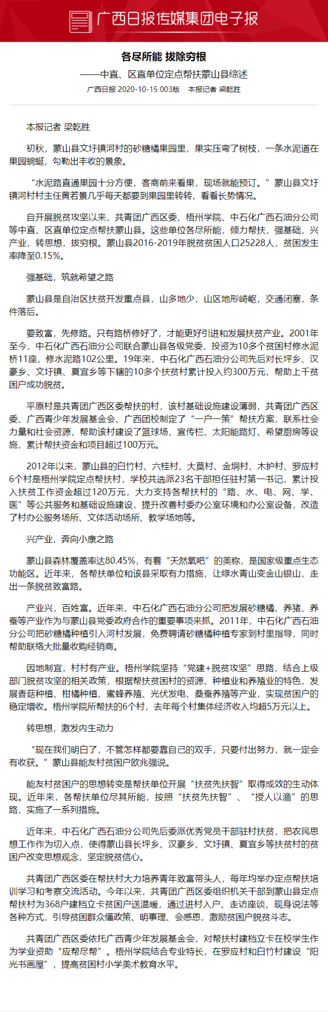 2020年11月15日,我院“三下乡”社会实践项目在广西日报报道了!