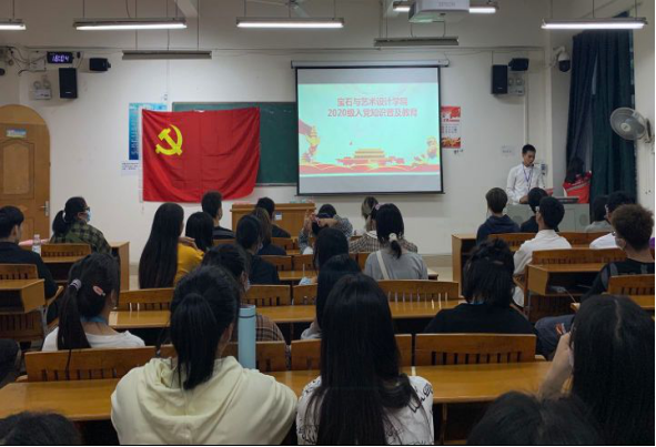 为持续、广泛、深入地对大学生进行党的基本知识教育,切实加强大学生思想政治教育,加大大学生党员队伍建设力度。2020年10月20号,宝石与艺术设计学院召开2020级新生入党知识普及教育活动。