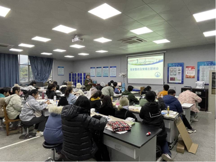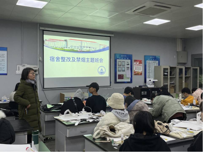 2020年下半学期第十五周,我院各班级开展了宿舍整改和禁烟为主题的班会。