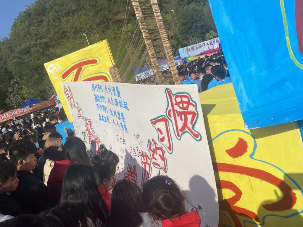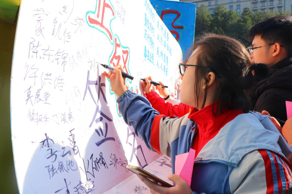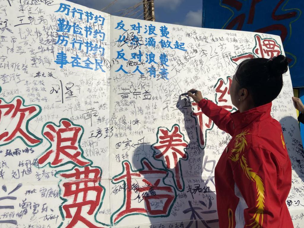 我院学生领取完倡议书之后,在领导老师以及团委学生干部们的带领下,纷纷在倡议板上郑重签下自己的名字,表示要用实际行动厉行节约、拒绝浪费。