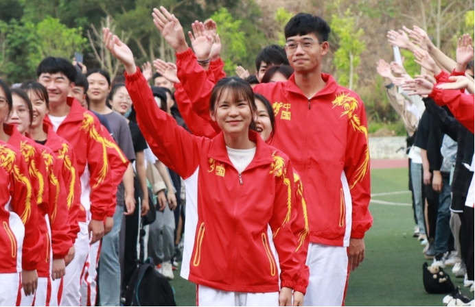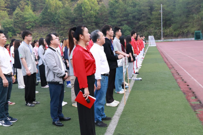 2021年4月12日清晨,宝石与艺术学院在田径场上举行纪念建党100周年升旗仪式。