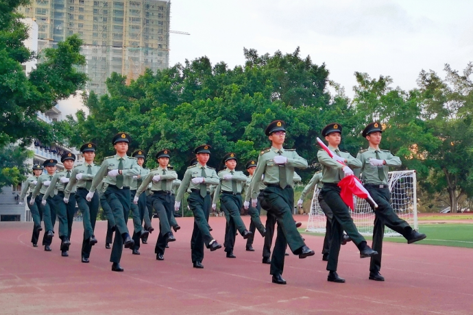仪式开始,国旗护卫队踏着整齐划一的步伐入场,伴随着庄严的国歌声,国旗苒苒升起。礼毕,由钟海明老师发表国旗下讲话,她讲到三点。一是要坚持党的领导,二是既要感谢党,也要感谢那些为革命,流血牺牲的先烈们,三是呼吁我们要团结一致,与时俱进,奋勇前行。