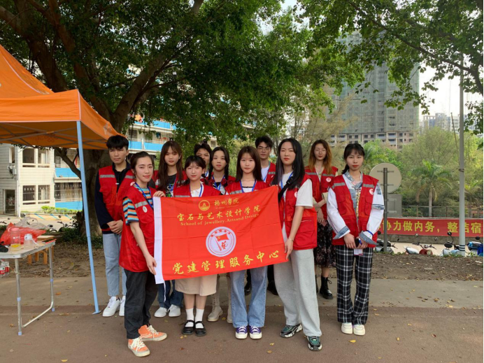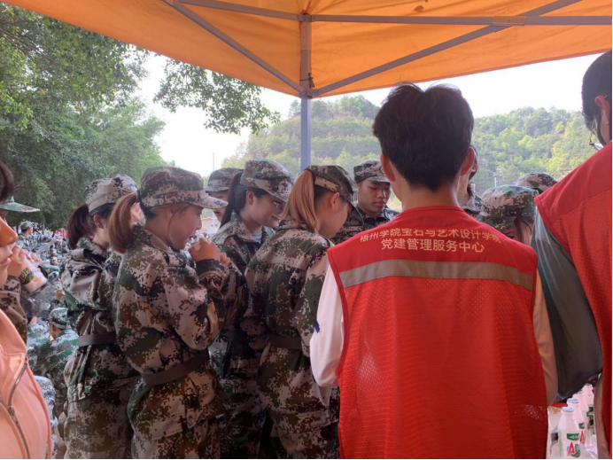 2021年3月17日,宝石与艺术设计学院党建管理服务中心的学生干部们到训练场看望慰问学院军训教官和学生。