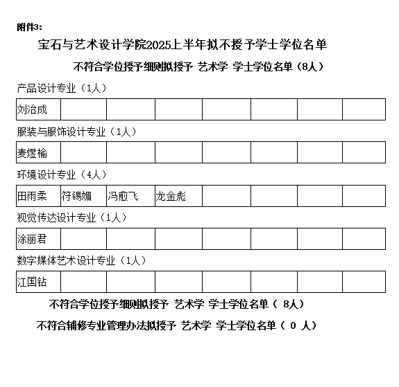 2025上半年拟授予学士学位资格认定结果公示期为2025年5月21日至2025年5月25日五天,如有异议,可在公示期内以书面形式署真实姓名向宝艺党政办公室反馈。