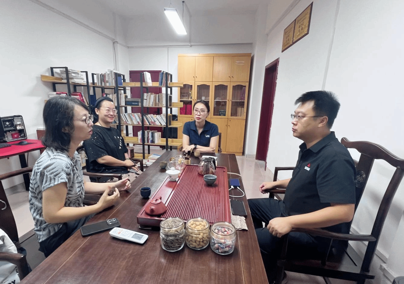 为推动宝石专业教育与行业需求精准对接,强化实践教学环节,10月15日上午10点,梧州学院宝石与艺术设计产品教研室主任李萌老师带队与梧州市博方贸易有限公司英萸董事长就宝石产业学院企业课程建设展开深度座谈。教研室专业课程教师张颖、肖堯一同参与,围绕《珠宝首饰专题设计》课程的落地实施进行全方位细致研讨。