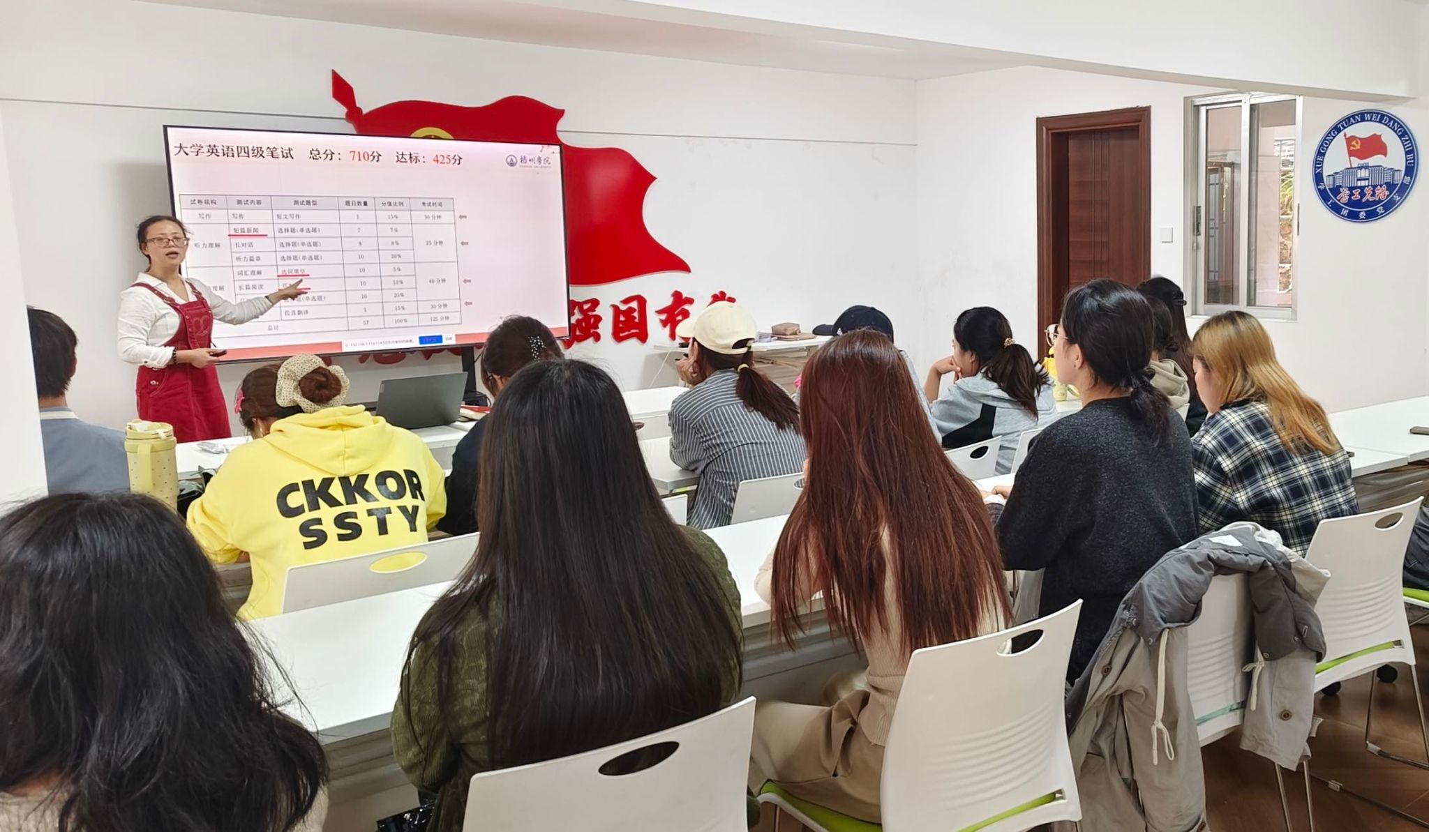 为助力学生提升英语四六级应试能力,2025年11月6日下午,宝石与艺术设计学院“四六级高效备考——大学生英语应试技巧专题讲座”在大学生一站式服务中心顺利开展。本次讲座邀请外国语学院资深教师伍靖副教授担任主讲,学院众多学生到场参与学习。