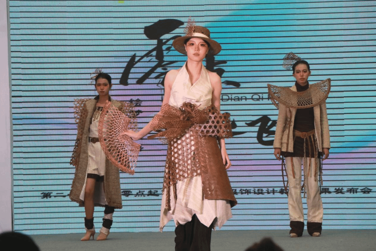 在这些造型独特、色彩绚丽的作品中,传统文化与现代时尚实现了巧妙融合。学生们深耕文化沃土,从三星堆文明、古代甲胄、青花瓷等传统文物,荷花、茶染等自然与传统工艺,戏曲、剪纸、竹编等民间艺术,以及少数民族文化、民俗传说、山水秀景中汲取灵感,将这些文化元素融入现代设计语言。作品既延续了中华优秀传统文化的精神内核,又突破了传统表现形式的束缚,通过传统工艺与现代技术的结合、文化内涵与时尚理念的碰撞,呈现出独特的艺术魅力与深厚的文化底蕴,彰显了年轻设计师们传承经典、勇于创新的时代担当。