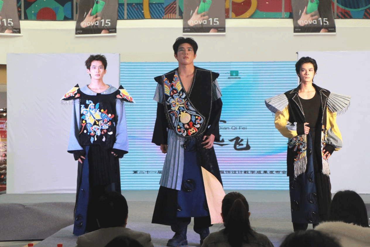 本次教学成果展是学院服装与服饰设计专业“理论+实践+创新”三位一体教学模式的生动实践,集中彰显了专业在人才培养中的扎实成效与鲜明特色。专业始终以行业需求为导向,构建了涵盖设计基础、面料工艺、文化传承、时尚创新等模块的完善课程体系,通过“课堂教学+项目实训+赛事历练+品牌孵化”的全链条培养路径,将传统技艺传承、现代设计思维与市场应用能力贯穿教学全过程。从课堂上的设计草图绘制、面料肌理实验,到校企合作中的真实项目实操、行业专家面对面指导,再到时装秀舞台上的作品呈现,每一个环节都凝聚着专业教学的匠心与用心,有效锤炼了学生的创意设计、工艺制作、文化解读与综合表达能力。此次150余套作品的成功呈现,不仅是毕业生四年来学习成果的集中检阅,更印证了专业在培养“懂文化、精技艺、善创新、能落地”的复合型时尚设计人才方面的显著成效,为学生搭建了从校园走向行业的重要桥梁,也为区域时尚产业发展注入了新鲜血液,充分体现了高等教育服务人才培养、赋能文化传承与产业升级的重要意义。