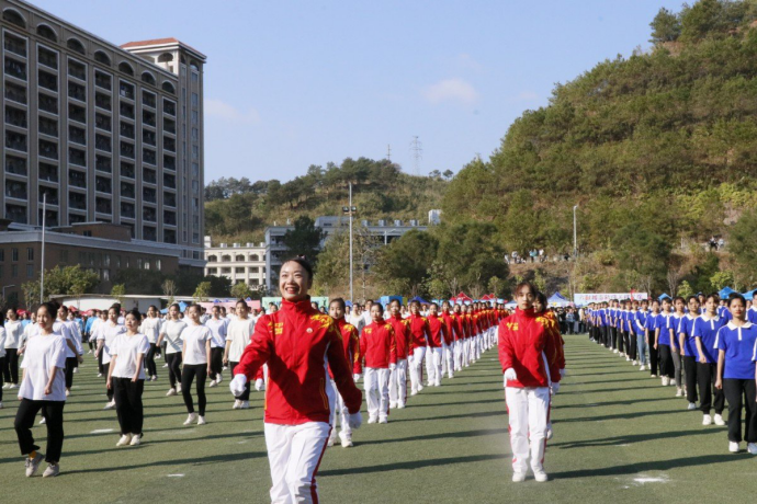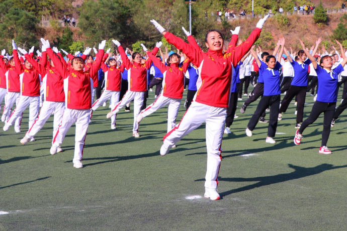 2020年12月3日,我院党委书记钟海明老师带领我院体操队参加体操比赛。作为赛场上唯一的带队老师,钟老师也跟同学们一样穿着红色体操服,融入大家。体操队伍整齐划一,动作强而有力,场上队员们朝气蓬勃,面带笑容,很是享受这次与老师的共舞。