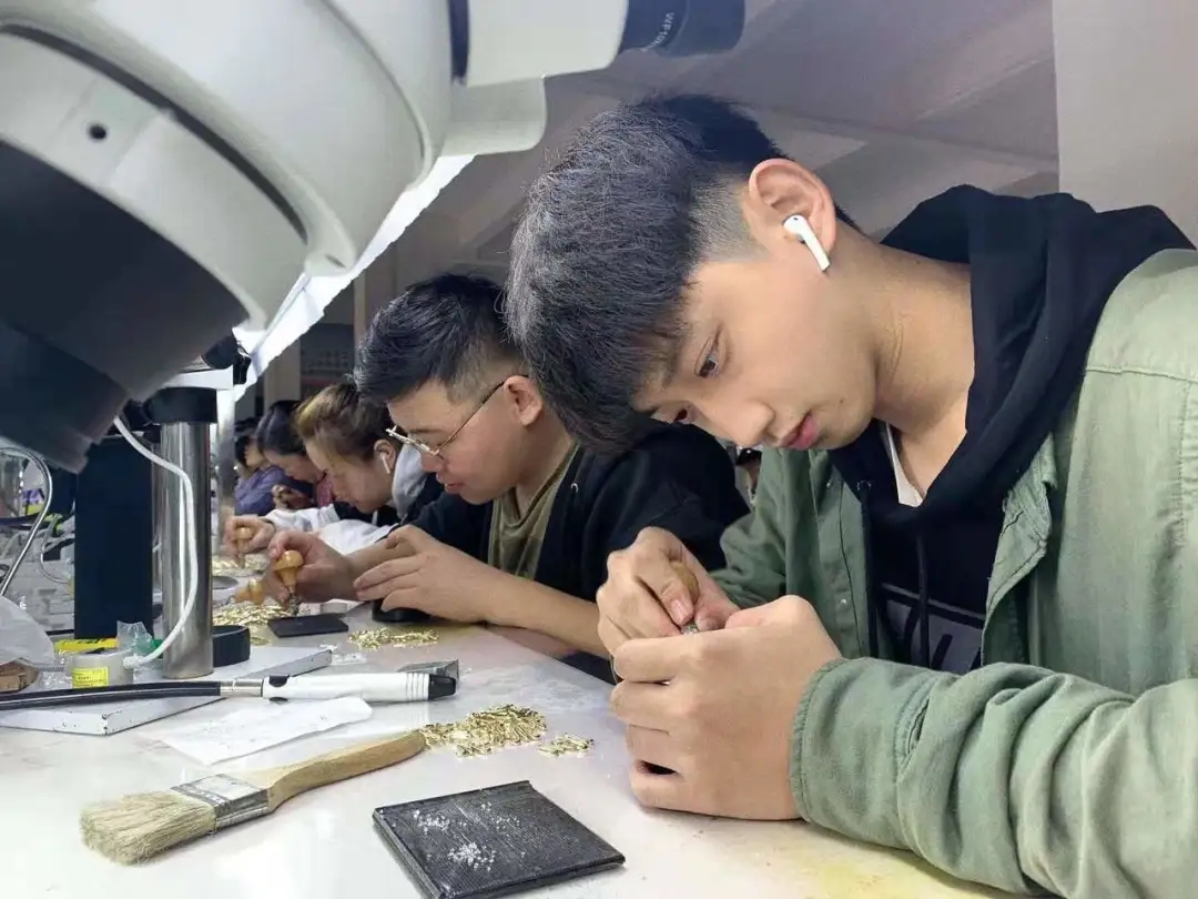 戴:优质课程方面,2019年我院产品设计专业的《宝石琢型虚拟仿真实验》课程被评为区级一流课程(金课),是我校两门金课之一;2018年我院产品设计专业的《流行饰品材料及工艺》课程,被列入教育部职业教育宝玉石鉴定与加工专业教学资源库建设项目。2018年产品设计专业获批为广西本科高校特色专业及实验实训教学基地(中心)建设项目,2019年产品设计专业获批自治区级一流专业,按照自治区一流课程建设三年行动方案,我院计划完成三门自治区级金课,即每年一门,同时争取申报国家级金课。