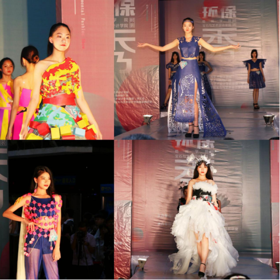 同学们利用塑料袋、碟片、废报纸等废旧物品,通过自己的想象力和创造力精心设计改造制作,创造出不一样的时尚服装;魅力十足的模特踏着动感十足的音乐节奏展示服装的美丽。通过环保时装秀展示,宣传环保理念,提倡环保意识,在充满艺术气息的秀场,为大家展示了一场精彩的视觉盛宴!