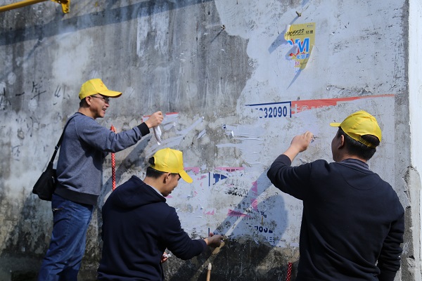 此次志愿义务劳动,一是对富新社区的人行道、街道及卫生死角进行了彻底清扫;二是对张贴在树干、墙面、地面、宣传栏、电线杆等的小广告进行了铲除。
