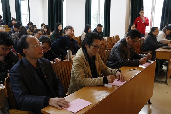 12月13日下午14:30在明理楼惑楼N-301教室顺利举行中共梧州学院宝石与艺术设计学院委员会党员大会。宝石与艺术设计学院党委由教工党支部、教辅党支部、职成继教院党支部以及两个学生党支部构成。出席本次大会的领导有宝石与艺术设计学院党委书记钟海明、宝石与艺术设计学院院长杨杰、成人继续教育学院院长毛廷贵、数据云服务中心主任(图书馆馆长、现代教育技术中心主任)梁文忠,宝石与艺术设计学院副院长唐哲、成人继续教育学院副院长文玉兰,数据云服务中心副主任(图书馆副馆长、现代教育技术中心主任)黄寄洪,以及各个党支部的党员。
