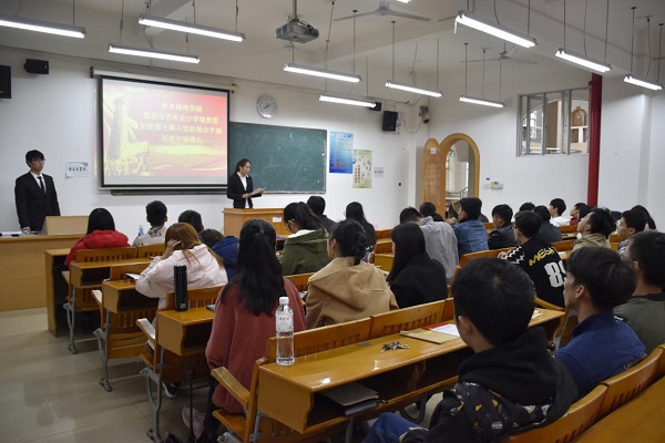 为了引领同学们积极向党组织靠拢培养同学们正确的入党动机,宝石与艺术设计学院第七期入党积极分子培训班开班典礼,于2017年11月24日下午四点,在明理楼M302教室隆重举行。