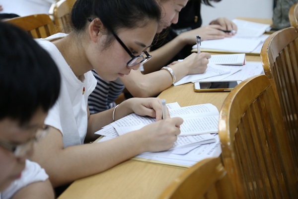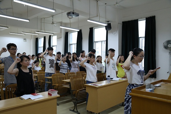 之后进行集体抄写党章活动,抄写过程中,同学们还积极分享了抄写党章的体会。党员同志王建楠提到,经过抄写党章的活动,使她对党的章程有了更深的了解,而且集体抄写党章,有利于大家共同学习探讨党章有关体会,使自己不断向党组织靠拢。谢蕊同志也积极发表了自己的心得,她说,通过这次集体抄写党章活动,使她的身心都更加靠近党,也更加了解党。在接下来的时间里,她将不断学习深入理解党章内容,做个思想上也不断追赶党的步伐的人。