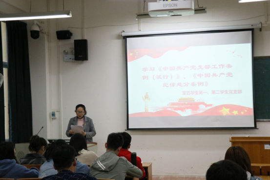 2019年3月17日下午15:30,宝艺学院学生第一、第二党支部全体党员在明理楼M301召开专题学习会议,学习了《中国共产党支部工作条例(试行)》(以下简称条例)。