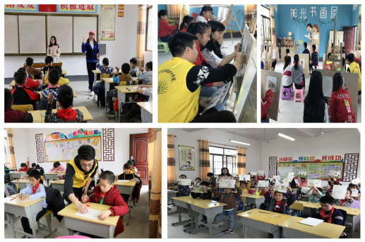 阳春三月,祖国大地一派生机勃勃。为弘扬和传承雷锋精神,为建国70周年献礼,为纪念五四运动100周年。我院青年志愿者在罗应村小学成功建立第二家“阳光书画屋”美术教室,作为国家的未来的接班人,大学生应该用自己的行动、智慧去帮助那些身在贫困地区的小学献出自己微薄的力量。为此宝艺学院党委书记钟海明老师、团委书记张亚敏老师等4位老师再次带领我院青年志愿者于3月15日前往蒙山县罗应村小学“阳光书画屋”进行义务支教,开展美术、书法教学。