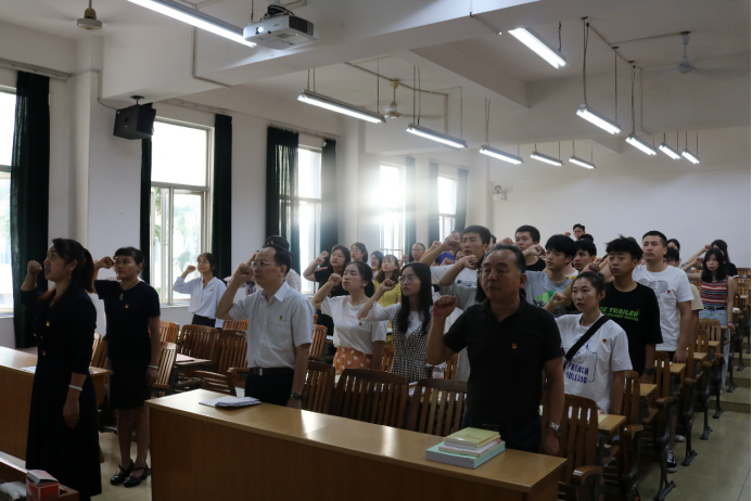 最后,全体师生党员在钟海明书记的带领下一起重温入党誓词。