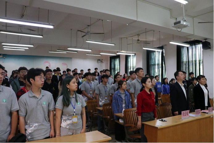 参会全体师生唱国歌