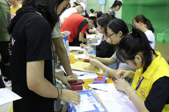 以周到的服务迎接新生,并为他们安排及时的休息等候室,提供茶水与咨询服务。与此同时学长学姐们带领19级新生穿梭于报名登记,一卡通激活等等新生办理入学手续必经的各个流程环节。