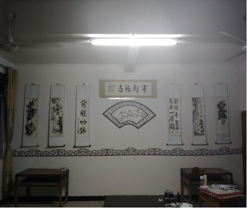 我院阳光工程志愿团队们抵达目的地的第一件晚饭过后,同学们对书屋进行最后的加工,对书屋进行了清扫,然后把墙上那些不要的纸屑都抠出来,晚上9点半,阳光书画屋打造先告一段落了。