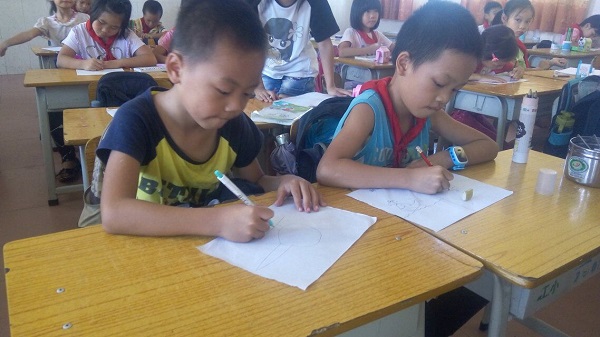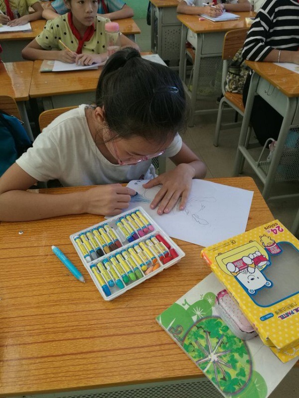 中午12点整志愿者们在南门集合前往双桥小学。到达小学后带领部长解说注意事项开始分布任务,每位新干事都与老干事志愿者们各自去到支教的班级,开始自己的第一次支教活动,心里既期盼又满怀激动。进到教室那会就被这些可爱的小朋友们深深吸引,与孩子们交流,教孩子们画画,小朋友们有问题也会举手提问,志愿者们都能及时的解决和引导他们学习。不知不觉中,新干事们就彻底融入支教的活动中,没了刚开始的紧张。一节课很快过去了,与孩子们虽然相处短暂,但孩子们的天真深深感染了志愿者们,让人舍不得离开,孩子们那认真学习画画的态度与神气可爱的姿势定格在志愿者们的记忆中。
