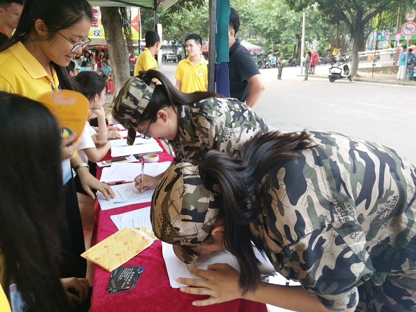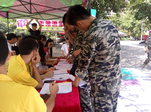 在招新报名处各部门都吸引着许多新生前来报名。虽然这段时间同学们每天都顶着热辣辣的太阳辛苦的进行着军训,但也阻挡不了同学们对加入青协分会的热情。军训一结束就跑来报名点了解青协各部门职能特色,各部门部长也都尽职尽责,耐心地给每一位新生介绍本部门职能、讲解部门特色。同学们了解后都根据自己兴趣爱好积极参与报名。希望能以我院青协这个平台来锻炼自己、磨练自己、展现自己、提升自己。