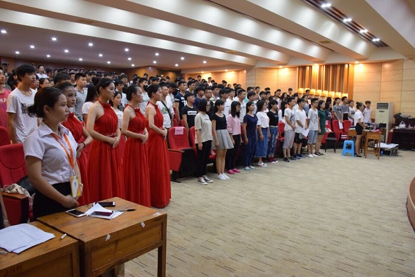 会议伊始,在庄重的国歌声中拉开了帷幕,随后由各专业教研室主任、老师为新生们介绍了本专业的概况、就业方向、师资力量以及为新生做大学四年专业学习的规划和期望。钟海明书记在讲话中提出了大学生要具有朝气和活力,要有美好的向往,要有团结精神,更是带领同学们同唱《团结就是力量》活跃了整个氛围。而后杨院长提出了要注重实践和创业的提升,要提升自我价值、发挥强项,取得全方面的进步。
