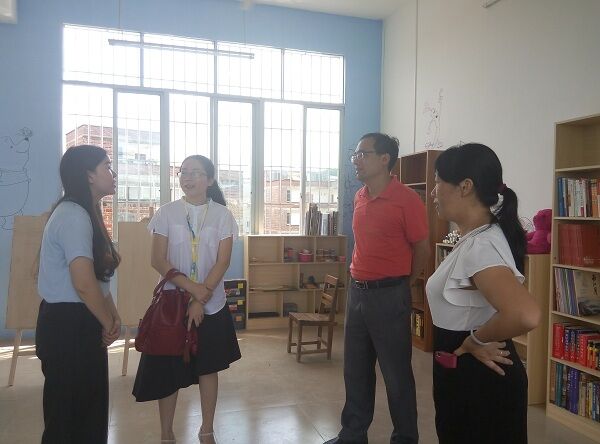 上午10点,陈远武书记、李青老师在双桥小学校长的带领下来到“阳光行动-爱心书画屋”教室,陈远武书记在参观教室的时候,询问了关于“爱心书画屋”装饰过程中的情况及教室里的书籍来源等,我们志愿者们也都积极的回答与解释,陈远武书记对“阳光行动-爱心书画屋”这个活动成果表示支持肯定与赞赏。