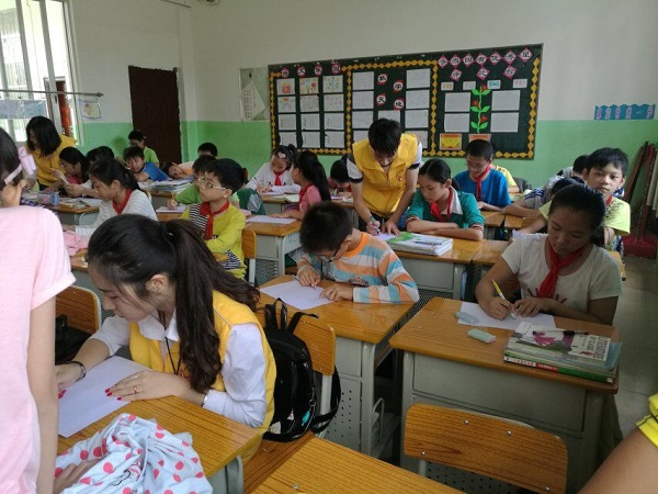 一节课的时间在和乐的相处下悄然过去,干事们即将暂时告别这些可爱善良的孩子们。他们对我们的尊敬和喜爱是我们一次次爱心支教的不懈动力!