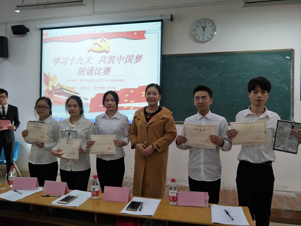 比赛中,各个学生团队通过《十九大颂》、《不忘初心,牢记使命》等振奋人心的诗歌朗诵表达自己对祖国的祝福和眷恋、对未来的憧憬和信心、对自己的鼓励和鞭策,用鲜活的事例和生动的语言诠释了对十九大精神和中国梦的理解和体会。宝石与艺术设计学院党委副书记王珍表示:“以这样特殊的形式学习贯彻十九大精神,将十九大精神传递给每一位学生,今后我们将继续以饱满的热情、昂扬的斗志投入到梧院建设的服务中去,为教书育人多办实事、办好事。”