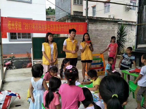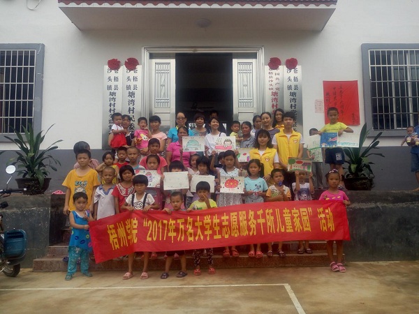 宝石与艺术设计学院“阳光团队”的志愿者们于2017年7月6日赴梧州市沙头镇塘湾村儿童家园开展“万名大学生志愿服务千所儿童家园”活动。