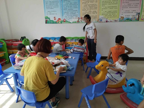 6月30日,2017年梧州学院暑期社会实践“万名大学生志愿服务千所儿童家园”活动,由我院组建的“阳光行动服务团”,龙志强老师带队我院志愿者小分队前往万秀区城东镇双桥村儿童家园开展关注留守儿童,教小朋友画画、学唱爱国歌曲等活动。还没有走进去,小朋友们对我们的到来感到十分高兴和兴奋,早早就在哪里等着我们来,在他们的世界里,只有纯真无邪,有着玩不完的游戏,有着跳不完的舞等等,并且期待着有我们这些大姐姐大哥哥和她们一起进行游戏,她们都会觉得比平常好玩得多,纷纷向我们展示他们的特长。
