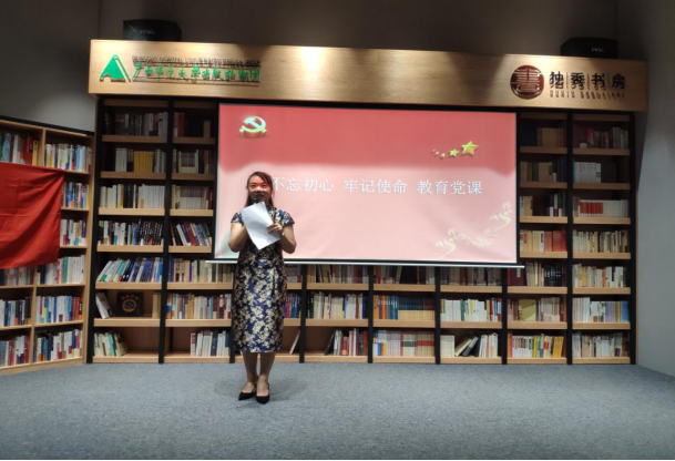 会上,钟海明书记给全体师生党员上了一次生动的《不忘初心、牢记使命》主题教育党课。钟书记指出我们每一个党员始终牢记自己的政治身份,始终保持一种组织归属感和身份荣誉感,无论身在何处,身在哪个岗位都要充分发挥党员的先锋模范作用。