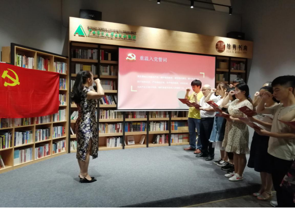 会上,学院领导分别为上半年过政治生日的教师党员、学生党员送上政治生日贺卡,并表达对他们诚挚的祝福。毕业生党员代表陈添祥、何昕婕两位同学上台发言,从回忆当时加入党组织的情景到如今过政治生日激动地心情,他们表示身为一名党员,倍感骄傲。在一同观看《我宣誓》党员教育专题片后,全体师生党员在钟海明书记的带领下,面向党旗一起重温入党誓词。