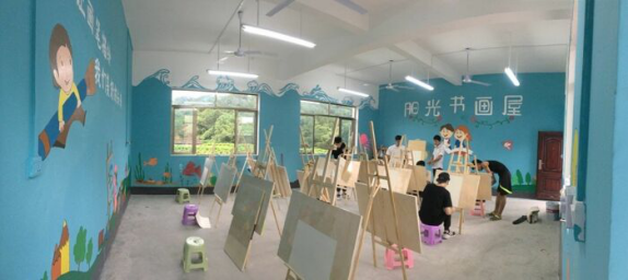 以建设阳光书画屋为主题,从书画屋的设计、到购买各种材料、再到把各种材料搬到书画屋。活动期间,大家积极响应,即使天气很热,但大家干劲十足,激情满满,为的是帮助更多需要帮助的贫困小朋友,让他们同样得到绘画艺术的熏陶。为了阳光爱心书画屋的建设,我院“阳光志愿服务团”在这里分工合作,团结一致,对书画屋进行墙绘,安装画板画架书柜,将图书进行妥善安置,将书画屋一步步完善。我们看到了志愿者们对“阳光爱心书画屋”活动支持的热忱。终于,经过4天日夜努力奋斗顺利完成书画屋的建设。